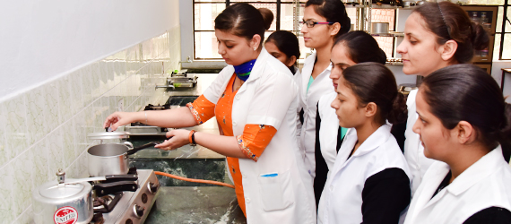 Here students are trained to learn various types of foods, their functions in the body and their nutritive value. The preparation of different diets required in different diseases like renal, hypertension, diabetes, burn, malnutrition etc. without losing nutrients under the guidance of a qualified dietitian. Lab is fully equipped with cooking utensils articles, gas stoves and cooking shelves etc. for the practice of the students. They will also use this lab to prepare different types of exhibits required to conduct various health educational programmes.